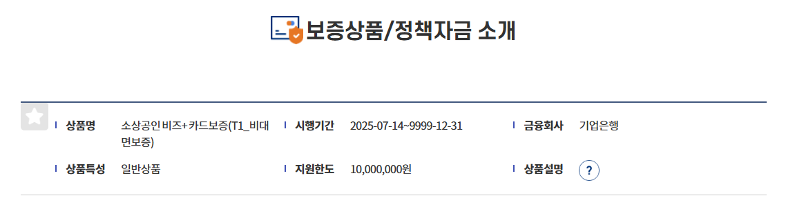 • 보증 승인된 후 90% 보증 기반으로 카드 발급 신청 가능