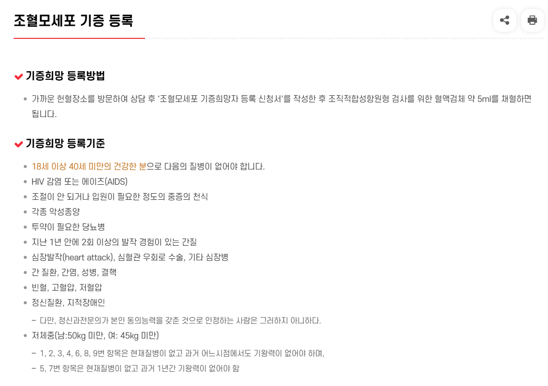 - 40세 이전에 등록만 해두면, 이후 매칭 시 기증 참여 가능