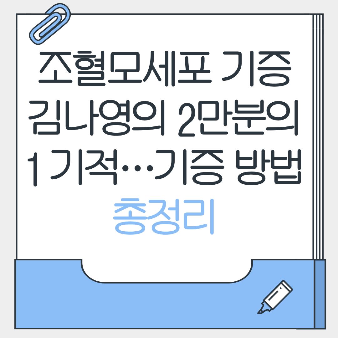 🩸 조혈모세포 기증, 김나영의 2만분의 1 기적…기증 방법과 조건까지 정리!
