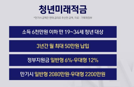 - 정부가 청년층 자산 형성을 지원하기 위해 운영하는 고금리+정부매칭 상품