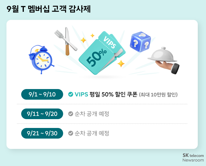 9월, SK텔레콤 T멤버십 고객이라면 놓치면 아까운 혜택이 한가득 쏟아집니다.
